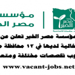 إعلان وظائف خالية – لدى مؤسسة مصر الخير في 12 محافظة مختلفة – وظائف متعددة – التقديم عبر الانترنت – منشور بالأهرام بتاريخ اليوم