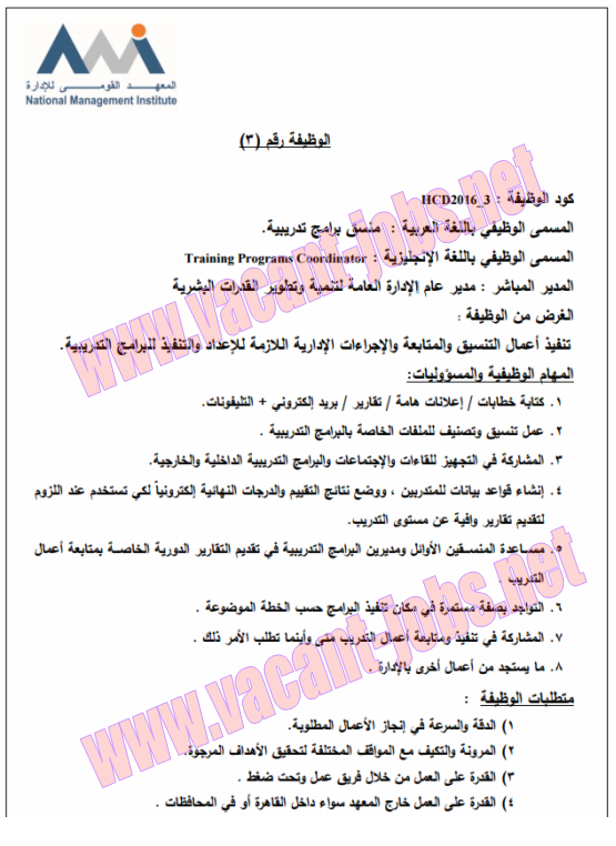 - المسمي الوظيفي باللغة العربية : منسق برامج تدريبيه