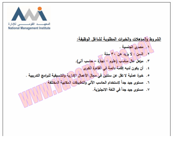 - إعلان وظائف المعهد القومي للاداره منشور في 12/1/2017