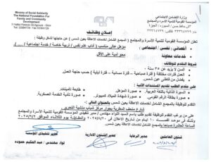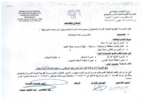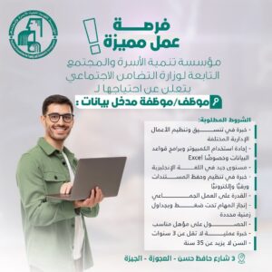 تعلن المؤسسة القومية لتنمية الأسرة والمجتمع عن حاجتها لشغل الوظائف التالية :