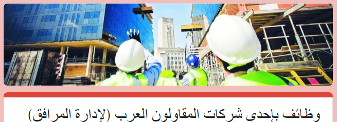 تعلن شركة المقاولون العرب عثمان أحمد عثمان وشركاه عن حاجتها لشغل الوظائف التالية بنظام اليومية، مع مرتبات مجزية ومزايا عينية: