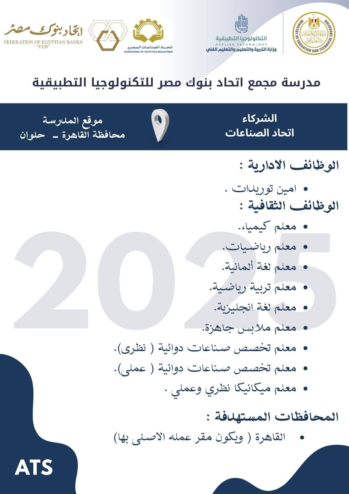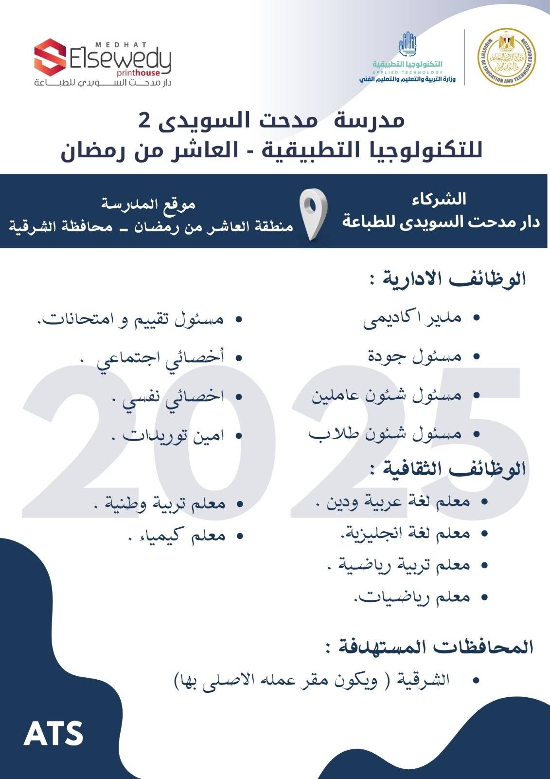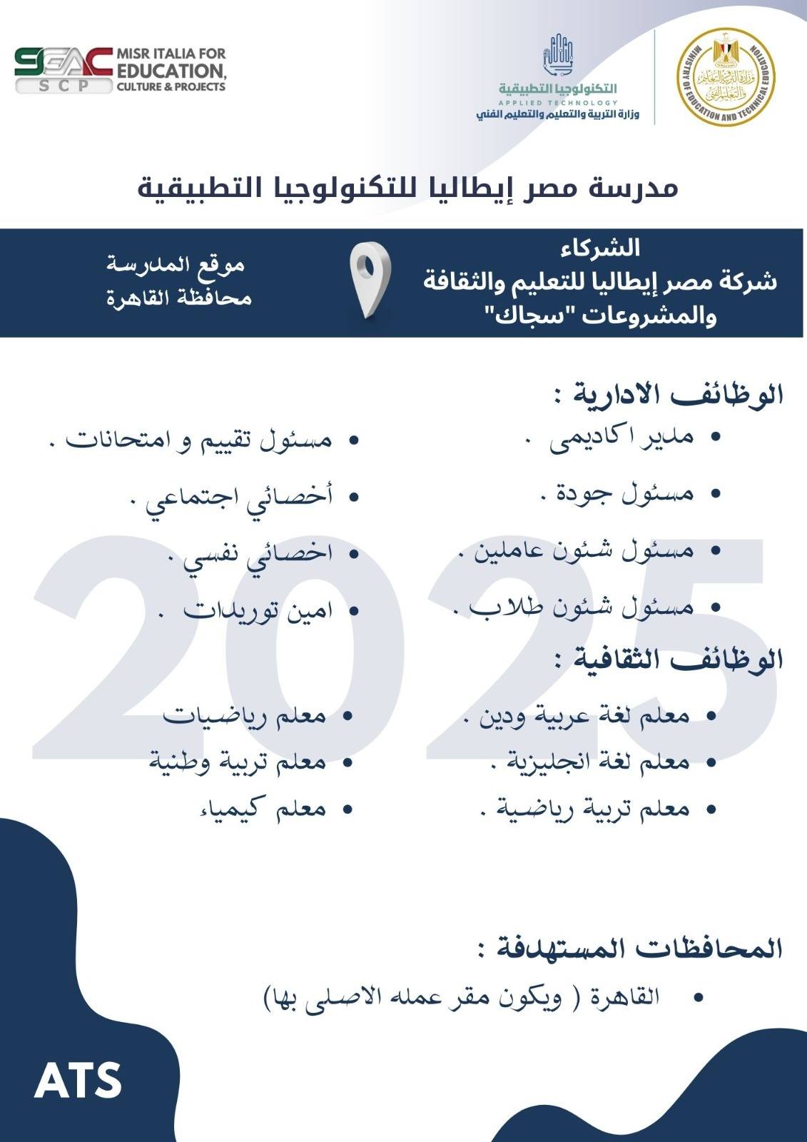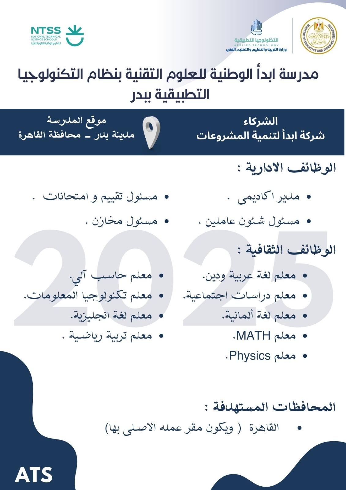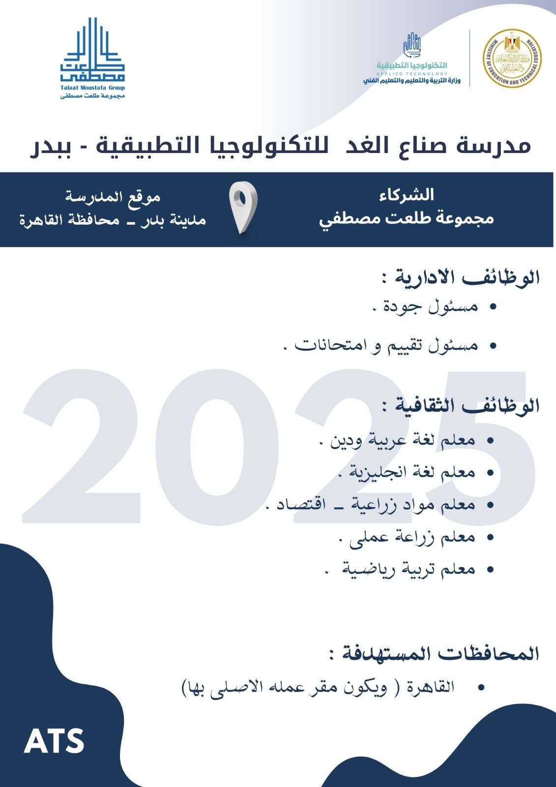 وظائف خالية وظائف مدارس التكنولوجيا التطبيقية لجميع المحافظات من اسوان لأسكندرية مدرسين وادارييييييييين للمؤهلات العليا والدبلومات رابط التقديم 2025