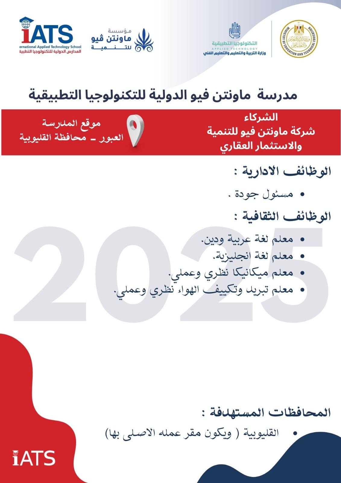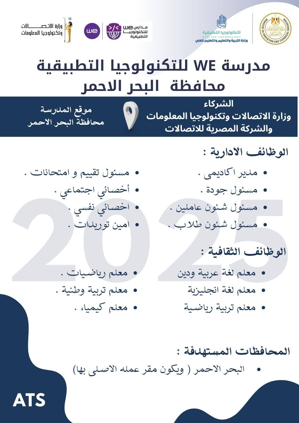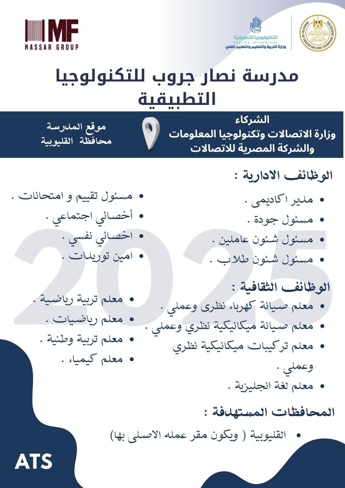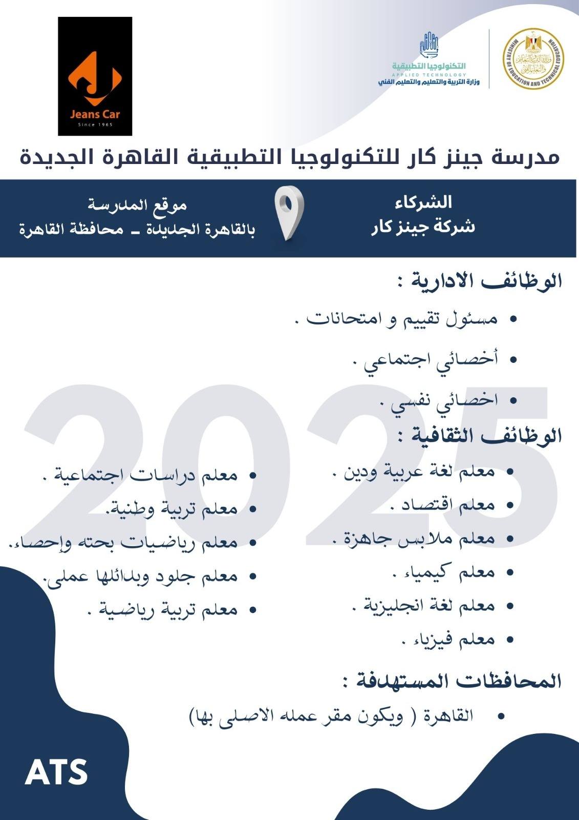 وظائف خالية وظائف مدارس التكنولوجيا التطبيقية لجميع المحافظات من اسوان لأسكندرية مدرسين وادارييييييييين للمؤهلات العليا والدبلومات رابط التقديم 2025