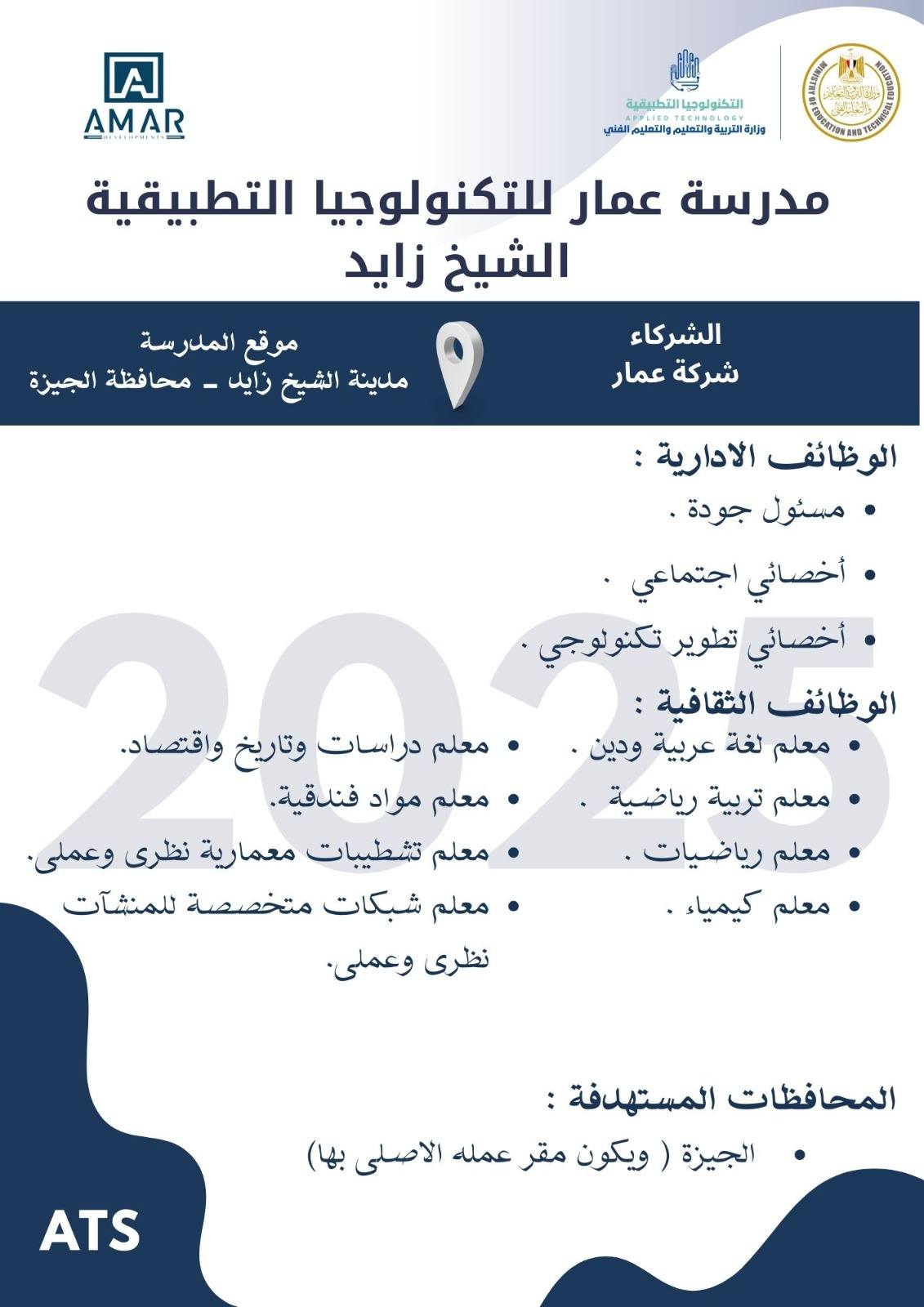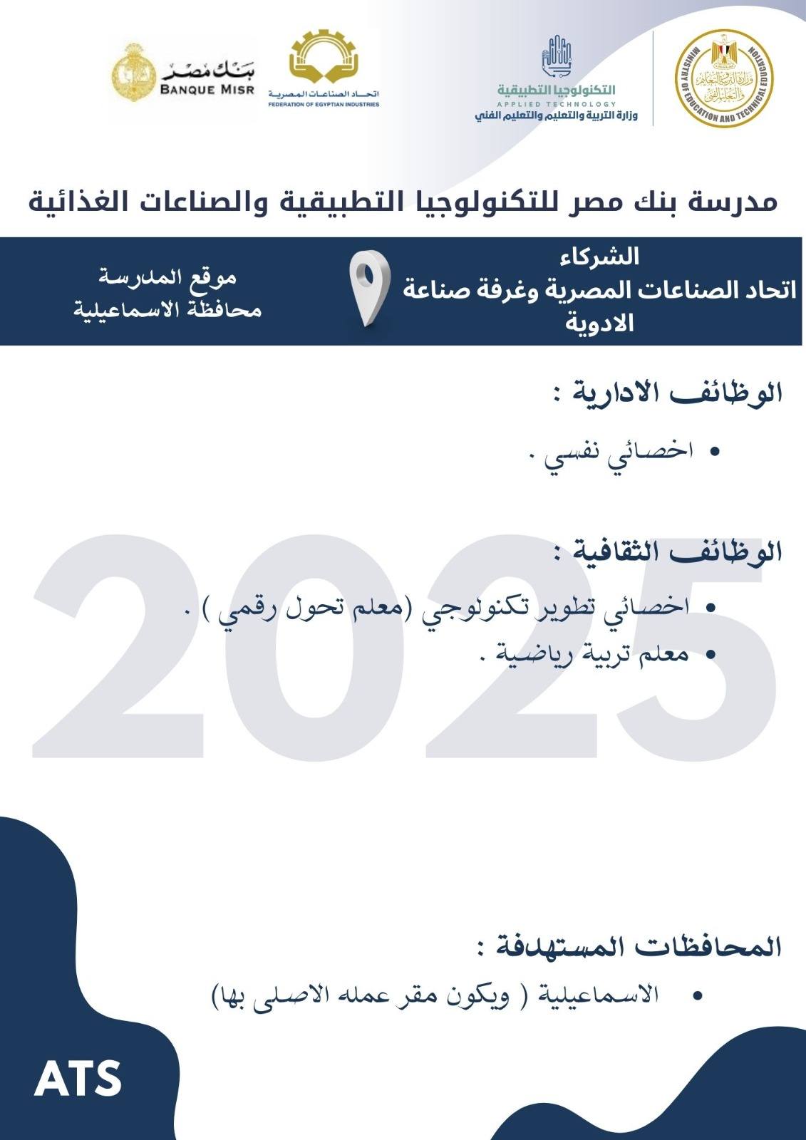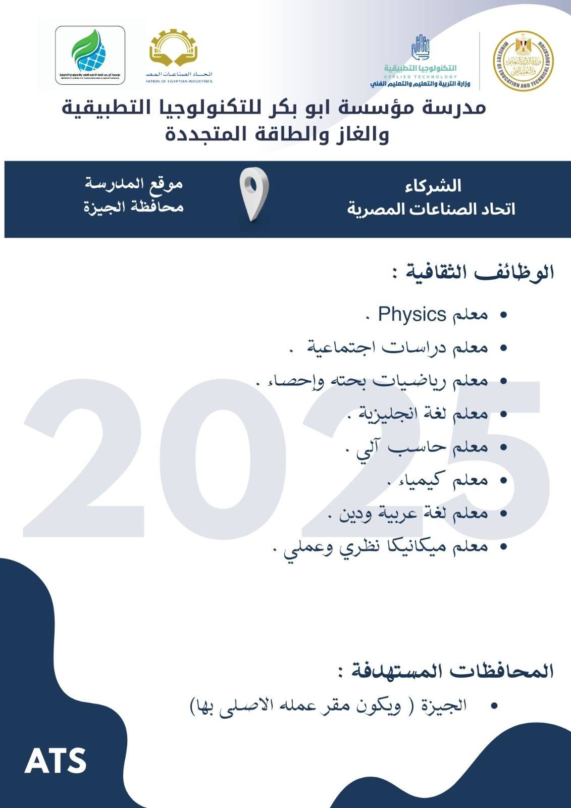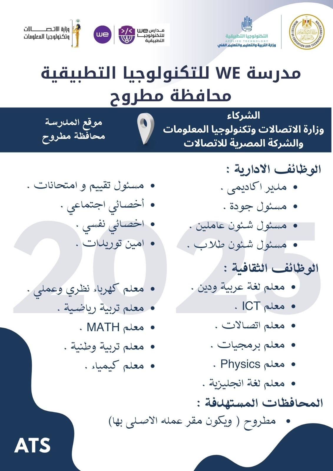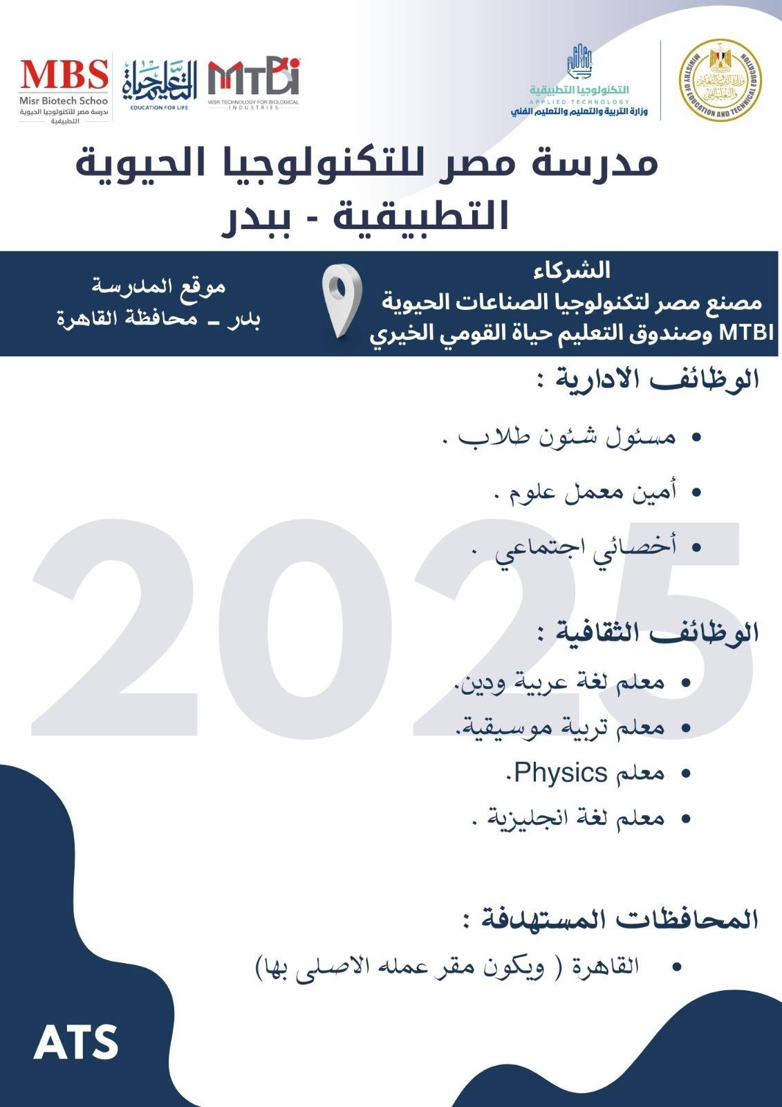 وظائف خالية وظائف مدارس التكنولوجيا التطبيقية لجميع المحافظات من اسوان لأسكندرية مدرسين وادارييييييييين للمؤهلات العليا والدبلومات رابط التقديم 2025