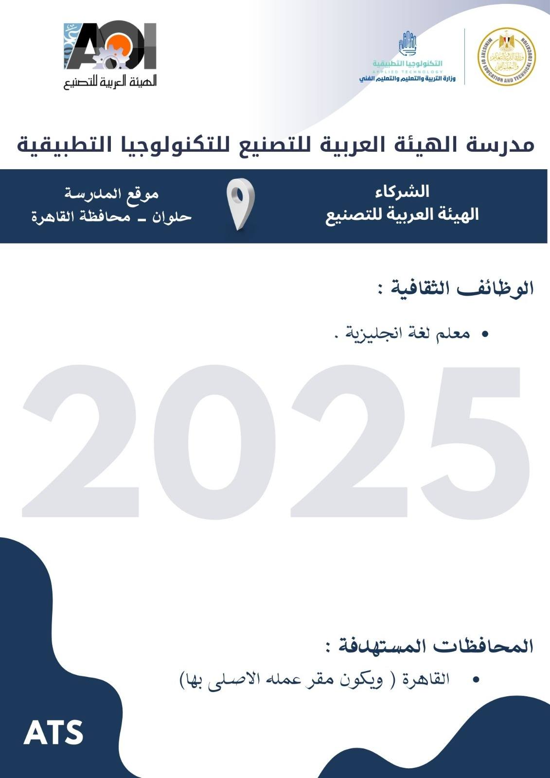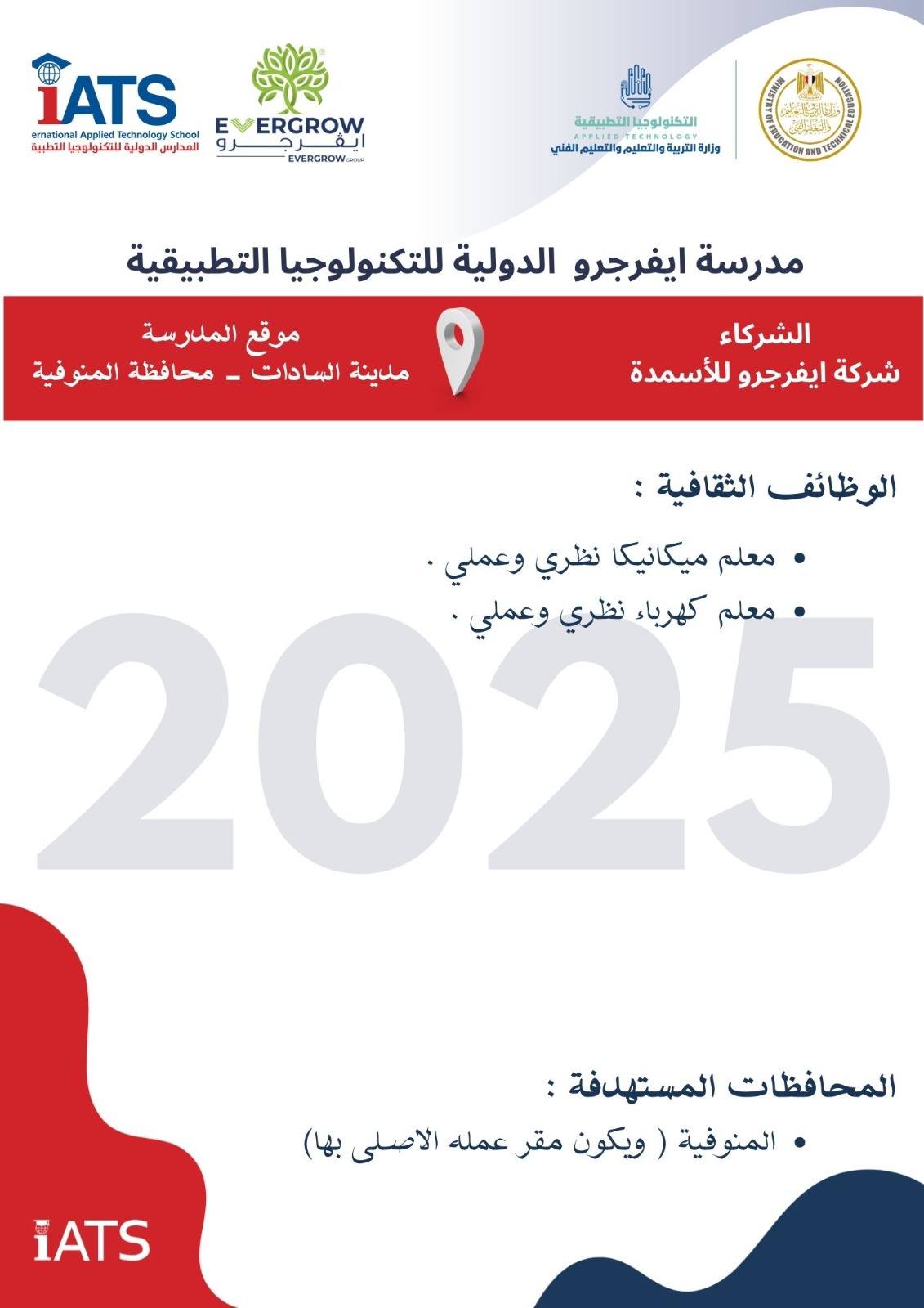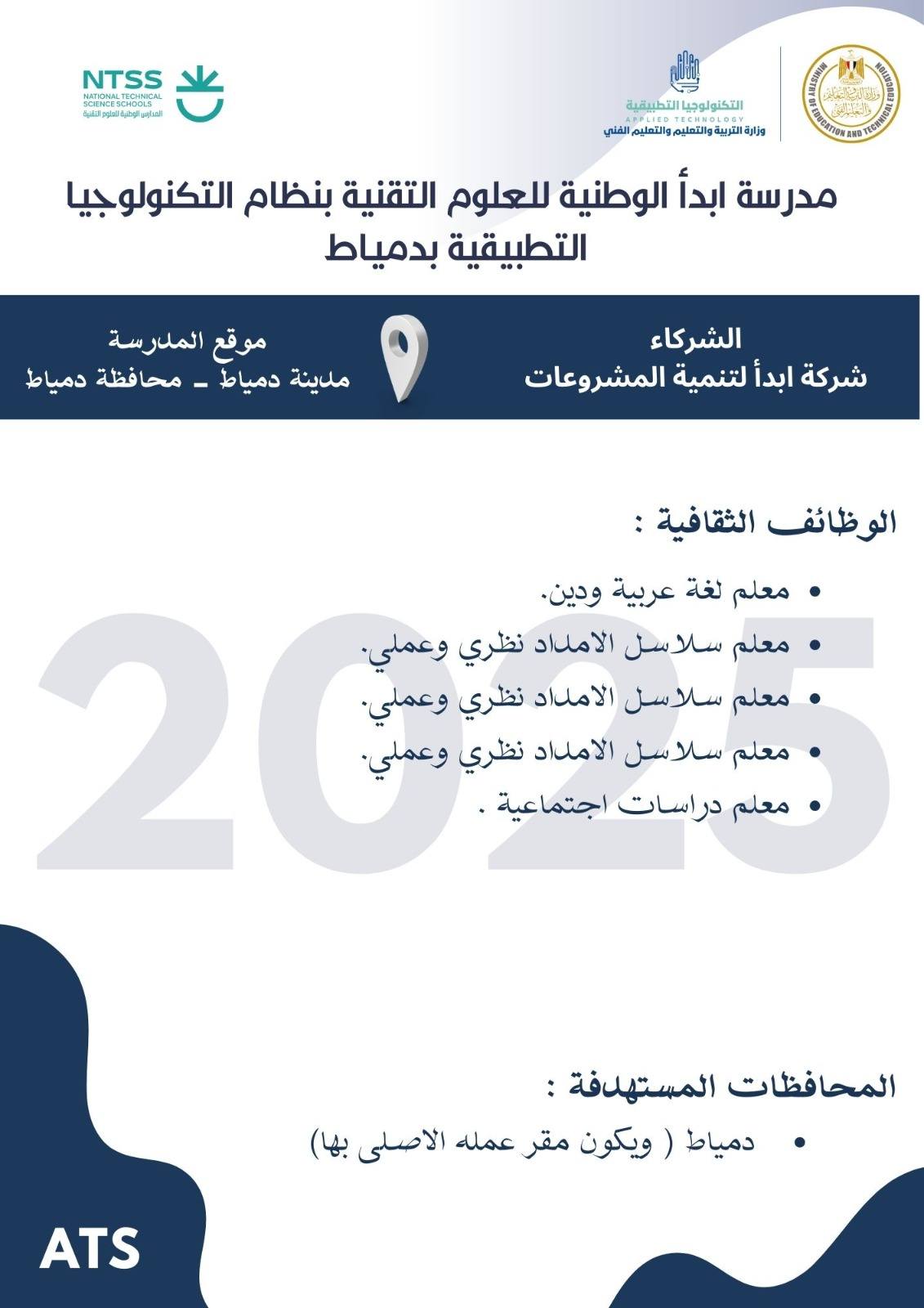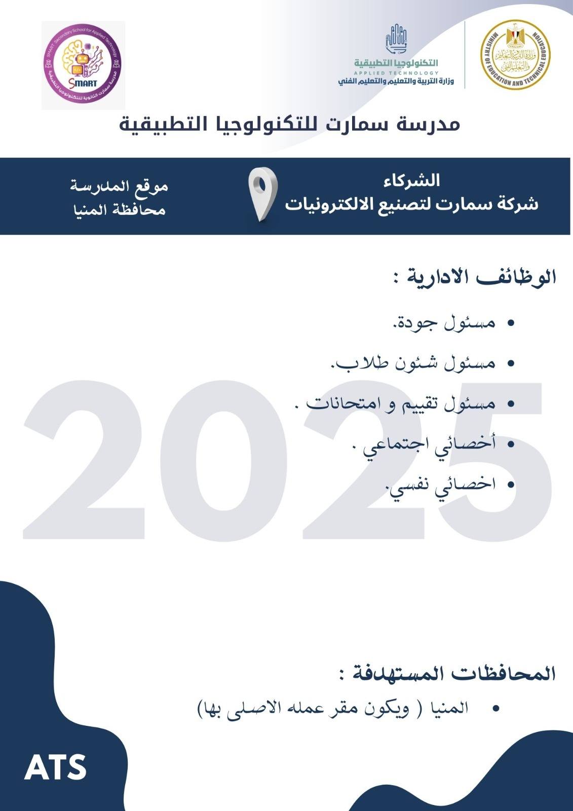 وأوضح الدكتور عمرو بصيلة، رئيس الإدارة المركزية لتطوير التعليم الفني ومدير وحدة تشغيل وإدارة مدارس التكنولوجيا التطبيقية، أن التقديم يستهدف اختيار عناصر بشرية متميزة قادرة على العمل في بيئة تعليمية حديثة تعتمد على التطوير المستمر والتدريب التقني عالي الجودة، تحت إشراف نخبة من الخبراء المعتمدين.