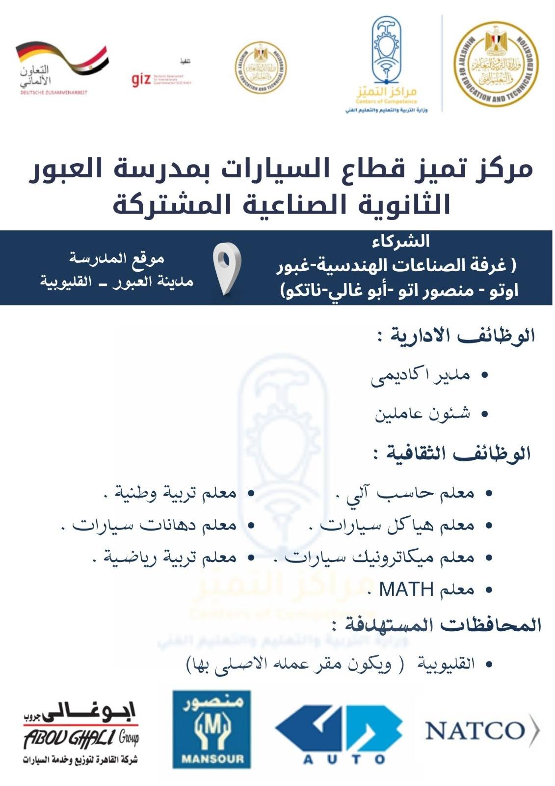 وقالت وزارة التربية والتعليم والتعليم الفني أنه يمكن الآن الوصول إلى رابط التقديم في وظائف مدارس التكنولوجيا التطبيقية ومراكز التميز عبر الموقع الرسمي للوزارة على الرابط التالي: