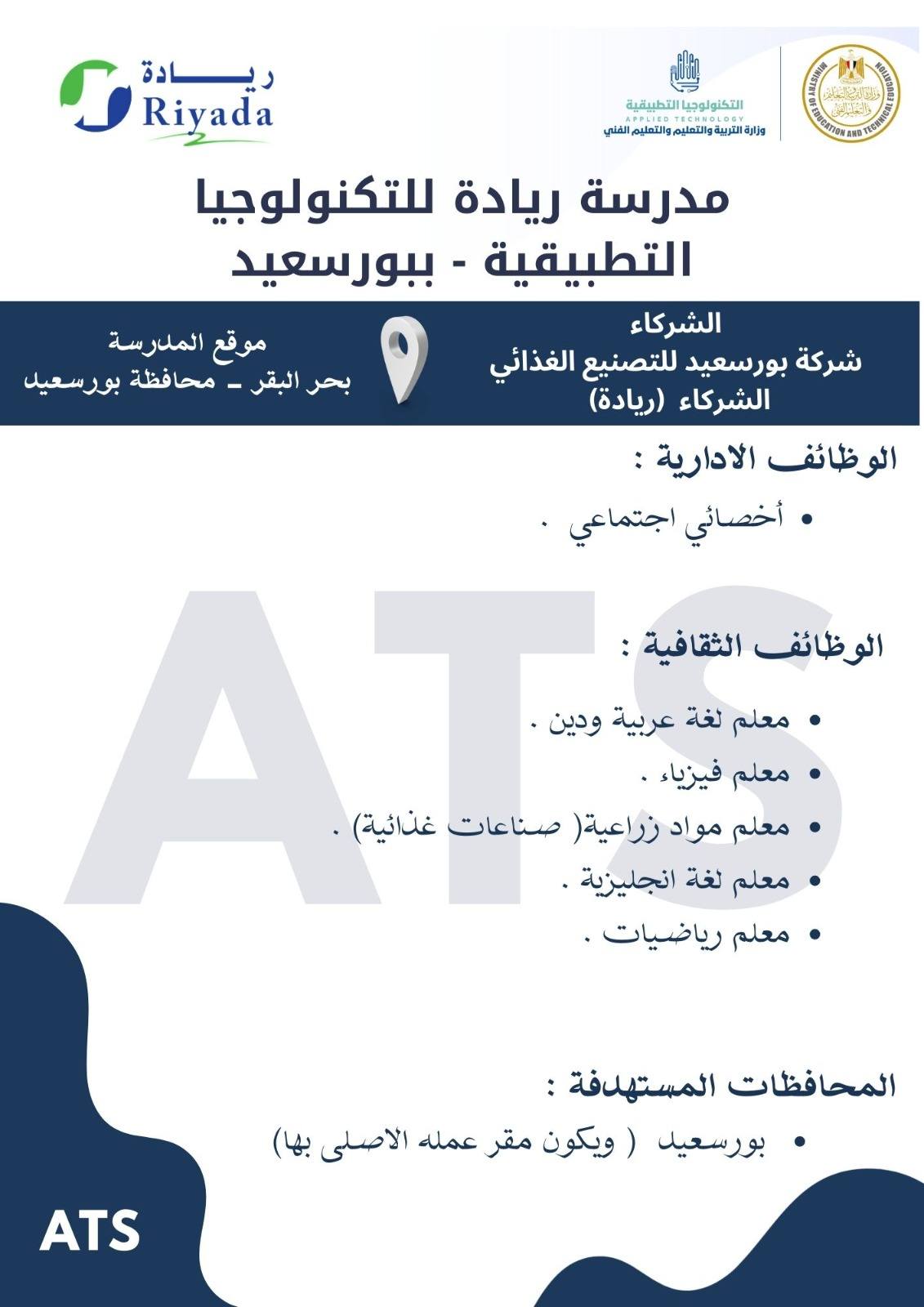 وظائف مدارس التكنولوجيا التطبيقية ومراكز التميز في 70 مدرسة