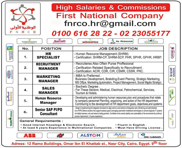 - وظائف خالية في الشركة الوطنية الأولى FNRCO منشور فى 20/1/2017