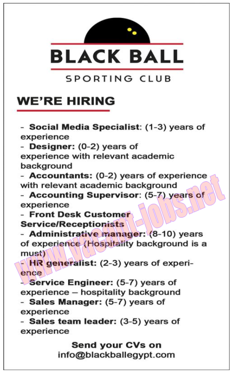 - فرص عمل “محاسبين وخدمة عملاء ومصممين ومهندسين وإداريين ” black ball sporting club