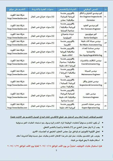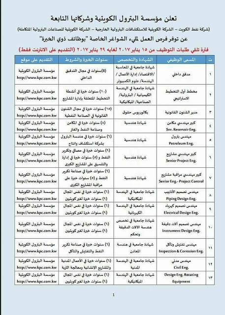 - فترة تلقى التوظيف من 15 يناير 2017 حتى 29/1/2017 والتقديم فقط عبر الأنترنت