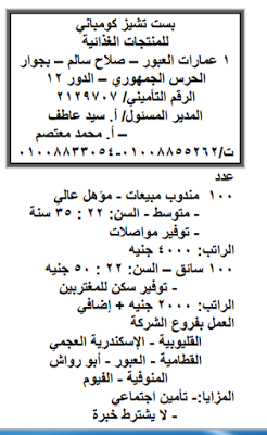 إعلان وظائف خالية – لدي بست تشيز كومبانى –راتب 4000 جنية – وظائف متعددة – في عدد من المحافظات