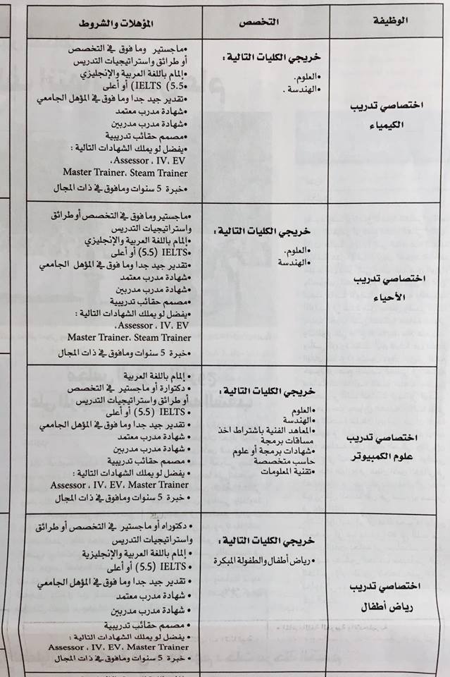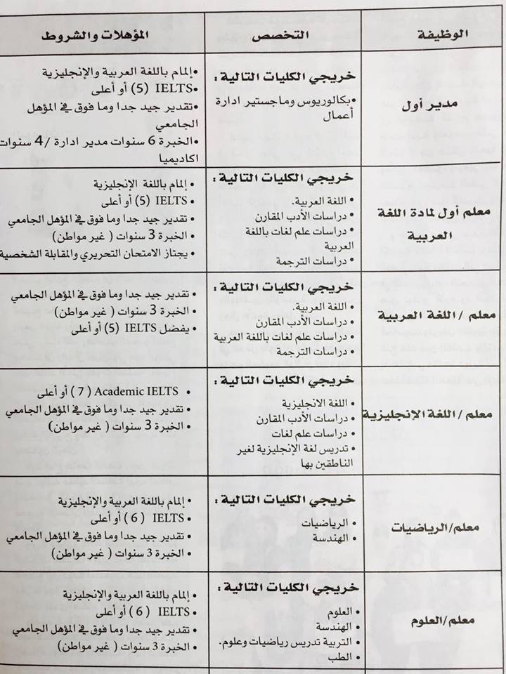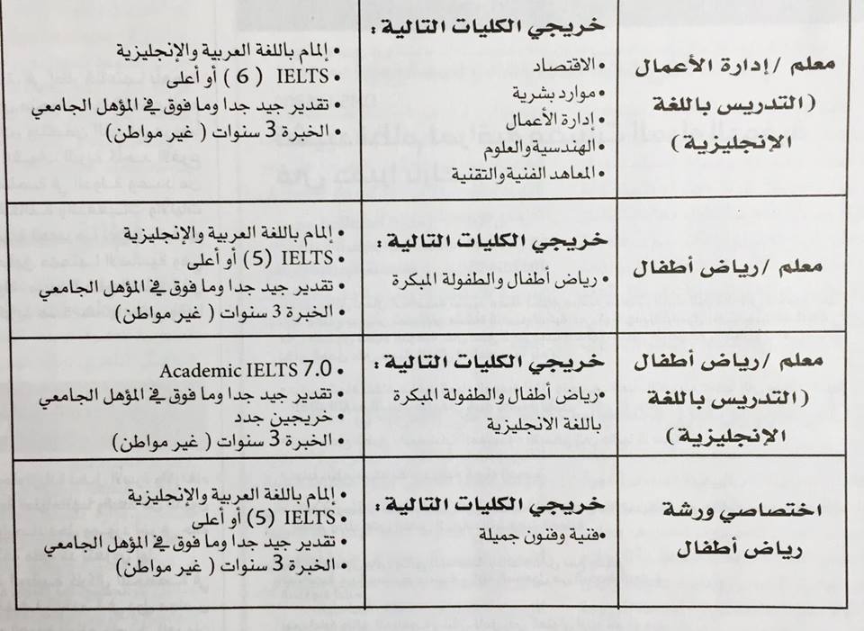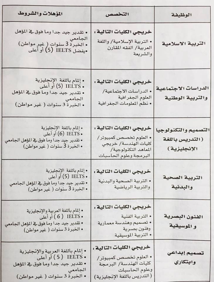 - إعلان وظائف وزارة التربية بالإمارات لخريجي العلوم والآداب والتمريض والتجاره والهندسه والتربية والكليات الأزهريه والفنون الجميله