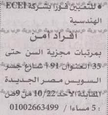 - الوظائف الشاغرة : مطلوب افراد امن بمرتبات مجزية