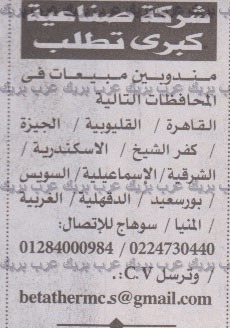 - تعلن شركة صناعية كبرى عن وجود وظائف شاغرة لديها وهى فى المحافظات التالية :