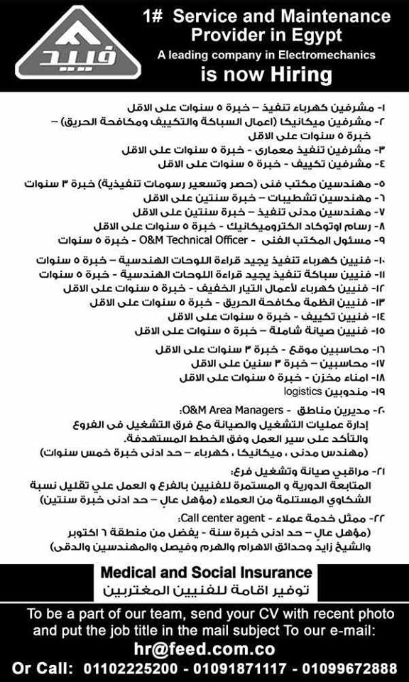 اعلان وظائف خاليه _ اعلان وظائف شركة فييد كبرى شركات الصيانة بمصر منشور فى الاهرام 13-10-2018