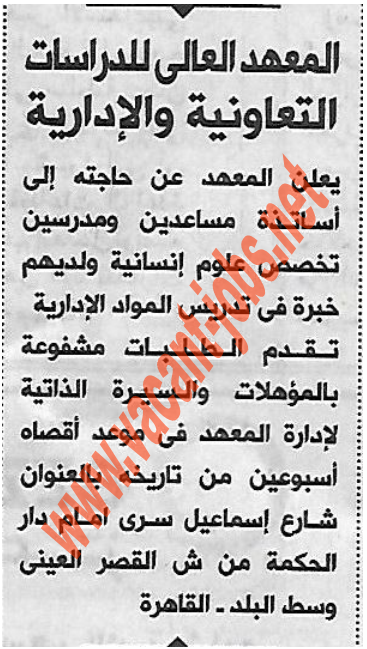 إعلان وظائف المعهد العالي للدراسات التعاونية والإدارية :-
