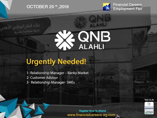QNB AlAHLI Vacancies . Come and meet their HR team on the 20th of October at helnan Landmark hotel New Cairo and get the chance to join them ! register now on