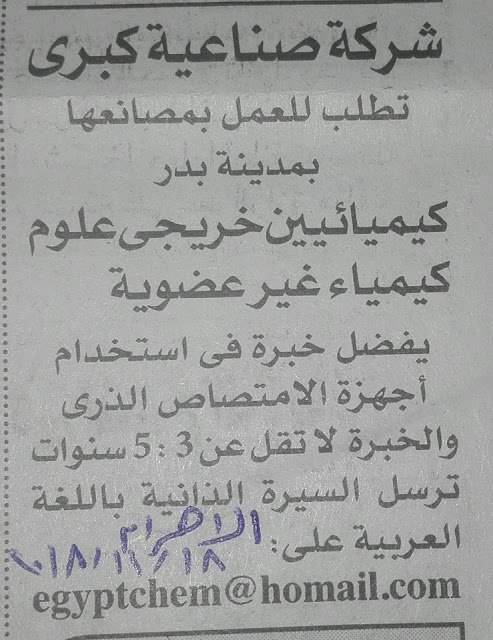 وظائف خالية لخريجى علوم من جريدة الاهرام 19-11-2018