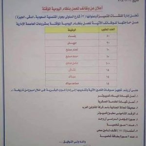 اعلان وظائف للعمل بنظام اليومية المؤقته