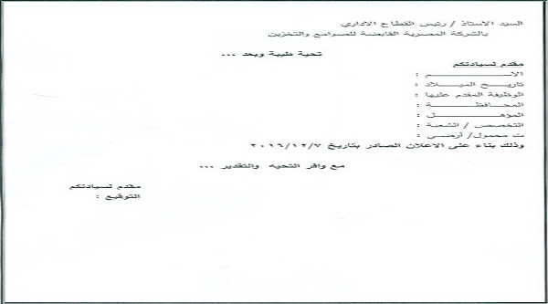 في عدد من الوظائف المطلوبة وفقا للاعلان الرسمى