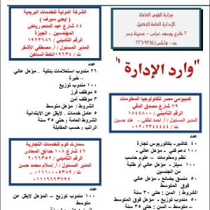 ننشر اعلان وزارة القوى العاملة عن 13000 وظيفة لجميع المؤهلات والتخصصات برواتب تصل الي 7 الف جنيه