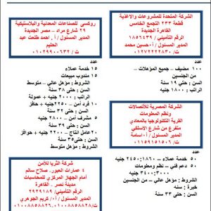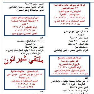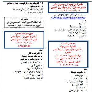 كل التفاصيل موجودة كاملة داخل كل اعلان المؤهلات المطلوبة والرواتب واسم الجهة التى سيتم العمل بها ولمعرفة المذيد والاطلاع علي كافة الاعلانات …. من هنا