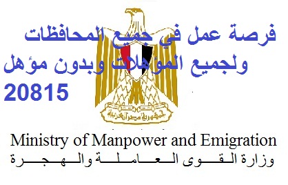 وظائف وزارة القوي العاملة والهجرة مطلوب 500 عامل وعامله جودة وانتاج وتجهيز بمراتب 2200 جنية