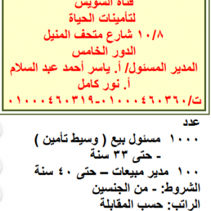 عدد 1000 مسؤل بيع ( وسط تامين )