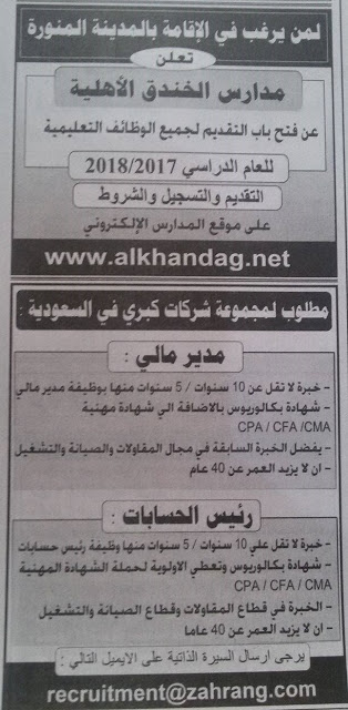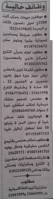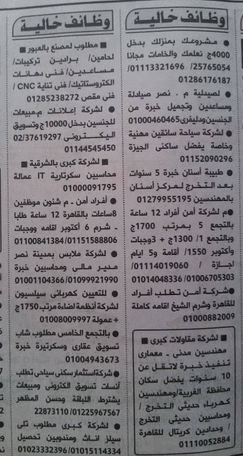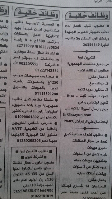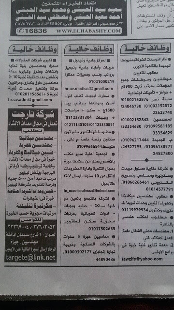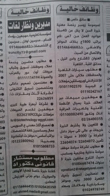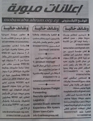 إعلانات وظائف خالية بجريدة الأهرام الأسبوعية لكافة المؤهلات العلمية وبدون مؤهلات … أكثر من 6000 وظيفة .. كافة التخصصات والمهن الحرة .. قطاع عام وخاص … داخل وخارج مصر .. شاهد التفاصيل الآن