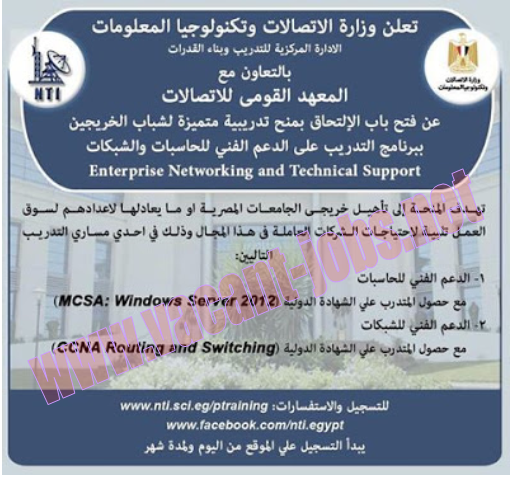 - تقدم وزارة الاتصالات وتكنولوجيا المعلومات بالتعاون مع المعهد القومي للاتصالات منح تدريبية متميزة تستهدف تدريب 600 شاب من خريجي الجامعات المصرية أو ما يعادلها، تم فتح باب الالتحاق اليوم ٣٠ ديسمبر 2016 ولمدة شهر