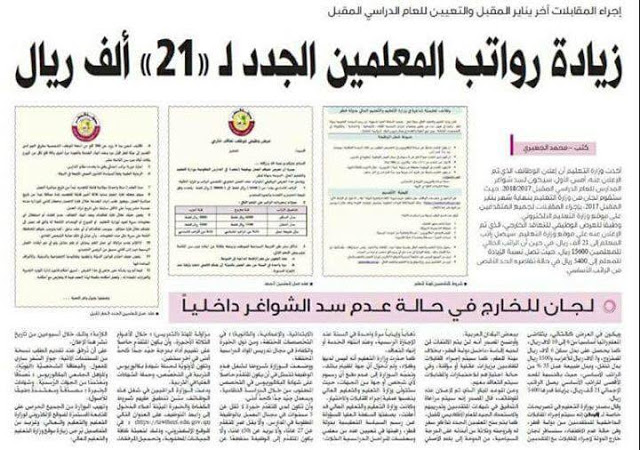 - زيادة رواتب المعلمين الجدد إلى 21 ألف ريال