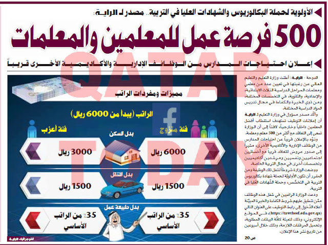 - 500 فرصة عمل للمعلمين والمعلمات