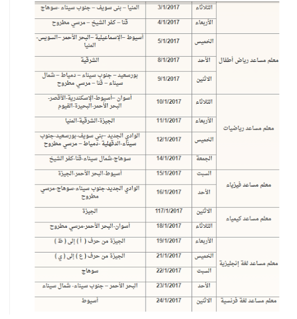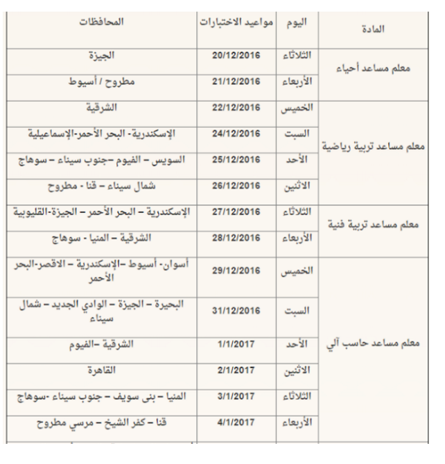 أعلن الأزهر الشريف عن مواعيد اجراء الإختبارات للسادة المتقدمين لوظائف معلم مساعد في المسابقة التكميلية المعلن عنها في 18/9/2016