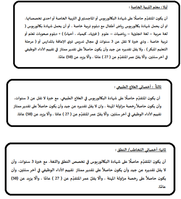 حدد الإعلان عدداً من الشروط لشغل وظائف التربية الخاصة ( ذكور – إناث )