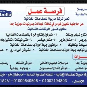 اعلان شركة ماربيلا للصناعات الغذائية للحاصلين على مؤهلات عليا ودبلومات وعمال اعلان شركة ماربيلا للصناعات الغذائية