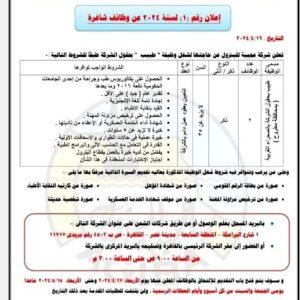 إعلان وظائف رقم 2 لسنة 2024 وظائف شاغرة بشركة عجيبة للبترول للحاصلين على مؤهلات متوسطة وعليا