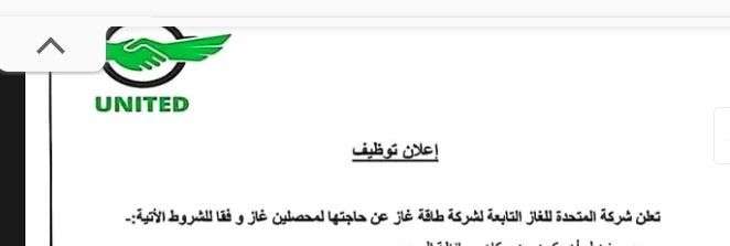 تعلن شركة المتحدة للغاز التابعة لشركة طاقة غاز عن حاجتها لمحصلين غاز