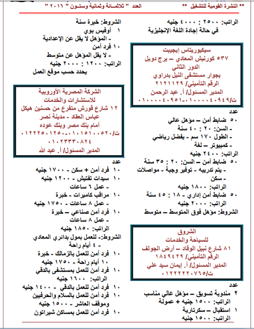 - أعلنت وزارة القوى العاملة والهجرة عن أكثر من 6000 فرصة عمل وتشمل جميع المؤهلات لعدد من المحافظات