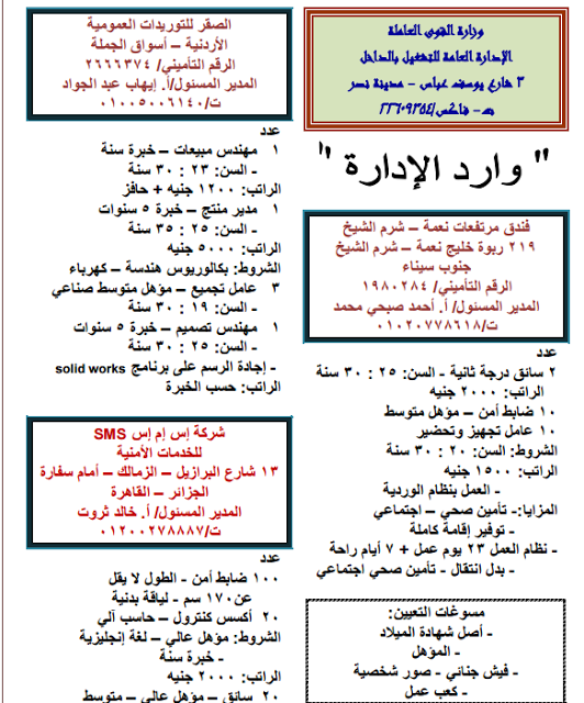 - عمال وفنيين وسائقين ومندوبين وامن ونظافة