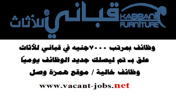 إعلان وظائف خالية – وظائف بمرتب 7000جنيه في قباني للأثاث – وظائف متعددة – التقديم عبر الانترنت