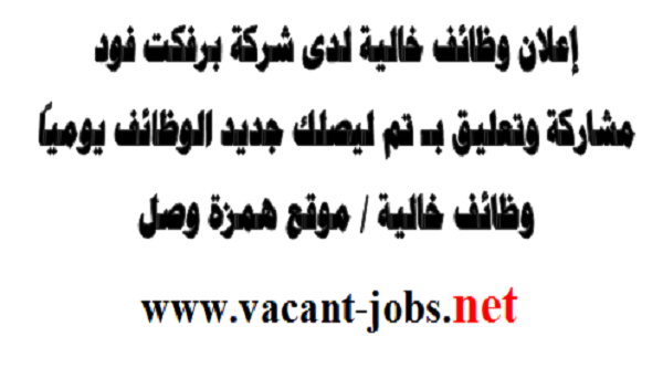 إعلان وظائف خالية – لدى شركة برفكت فود – وظائف متعددة – التقديم عبر الانترنت