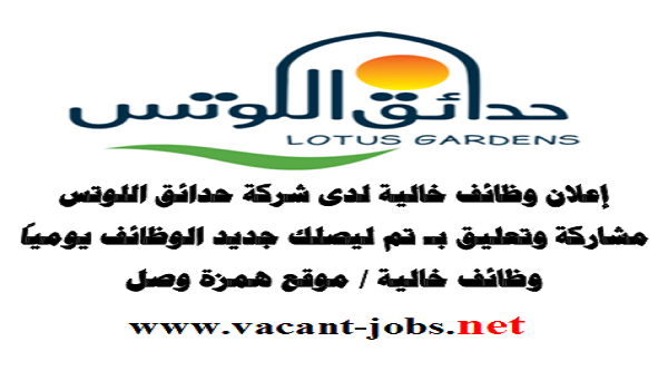 إعلان وظائف خالية – لدى شركة حدائق اللوتس – وظائف متعددة – التقديم عبر الانترنت