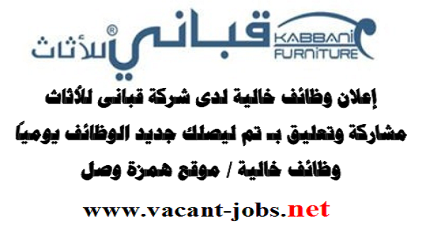 إعلان وظائف خالية – لدى شركة قبانى للأثاث – وظائف متعددة – التقديم عبر الانترنت