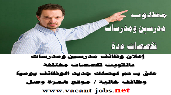 إعلان وظائف خالية – إعلان وظائف مدرسين ومدرسات بالكويت – تخصصات مختلفة – وظائف متعددة
